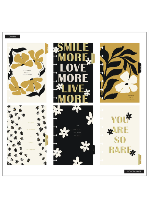 - Diseño elegante y moderno con detalles en papel dorado, citas inspiradoras y flores artísticas .