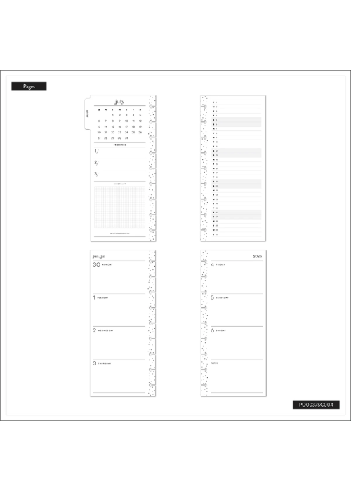 - Planificador con fecha de 12 meses desde julio de 2025 hasta junio de 2026 , con distribuciones mensuales y semanales .