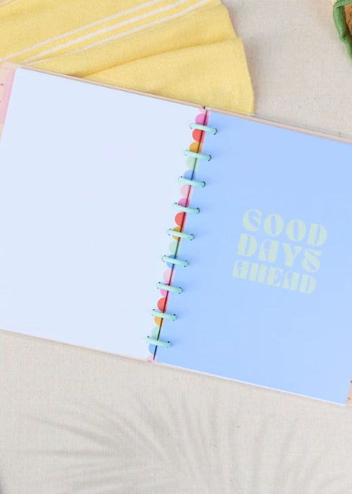 - Cuaderno colorido y positivo de 60 páginas con detalles en papel de aluminio en el tamaño Classic Happy Planner.