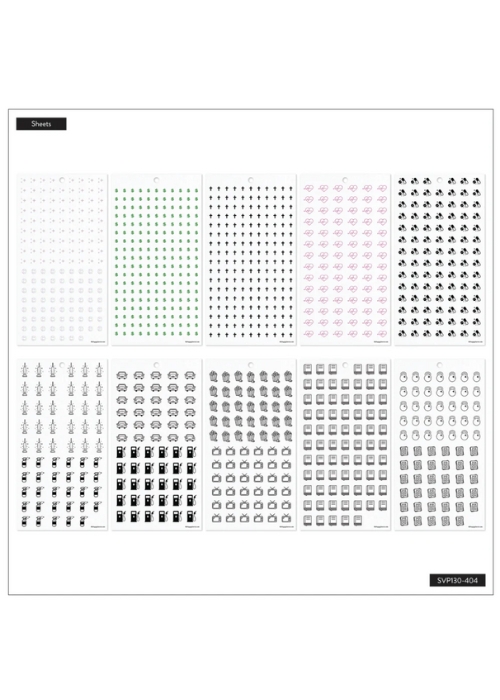 - Pegatinas de papel mate y pegatinas decorativas para añadir a tus calendarios mensuales y semanales.