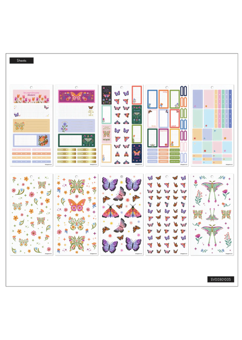 Deja que tu creatividad florezca con el Mini Álbum de Pegatinas Mystic Blooms, diseñado para aportar elegancia floral y un encanto caprichoso a tu Mini Happy Planner. Con impresionantes ilustraciones de la artista invitada Jess Miller, este álbum de pegatinas luce mariposas, polillas, motivos florales y detalles de ensueño. Ya sea que estés decorando las páginas de tu planificador semanal, escribiendo en tu diario o añadiendo funcionalidad a tus notas, estas pegatinas de alta calidad te inspirarán para que crezcas el próximo año.